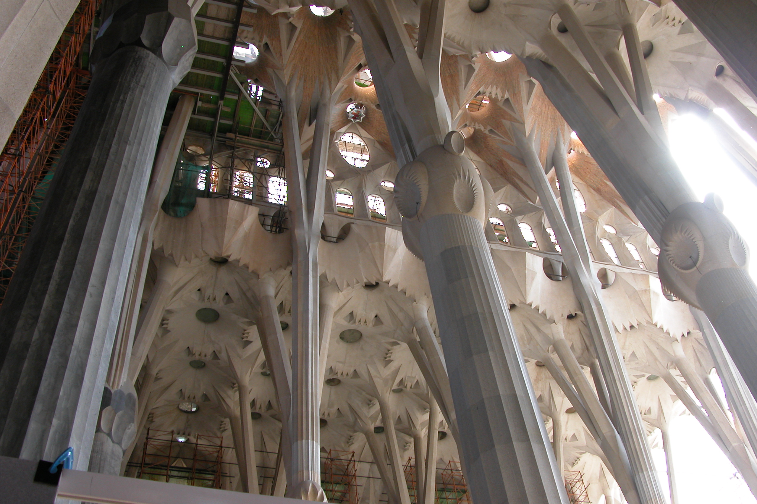 圣家赎罪堂(又名神圣家族大教堂)是由西班牙最伟大的建筑设计师高迪设计的,无论你身处巴塞罗那的哪一方,只要抬起头就能看到它。这座教堂从高迪在世时直到现在都在不停地建造,已经一个多世纪了,仍未造完,在它高高的塔顶上仍是布满了脚手架。 这是一座象征主义建筑,分为三组,描绘出东方的基督诞生、基督受难及西方的死亡,南方则象征上帝的荣耀;它的四座尖塔代表了十二位基督圣徒