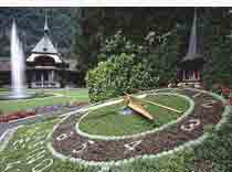 景区介绍 花钟是日内瓦著名景点。瑞士号称“花园之国”,同时又是“钟表之乡”,而更奇妙的是瑞士的能工巧匠绝妙地将花卉之美同钟表的制造工艺完美地结合起来,别出心裁地创造出了“花钟”。景区概况 花钟座落于莱蒙湖畔,是一种既能供人欣赏又能体现时钟功能的设施。它的机械结构设置在地下,地面上的钟面是由鲜嫩翠绿的芳草覆盖,代表12小时的阿拉伯数字则由浓密火红的花簇组成;有时候,钟面开满了艳丽的花朵,它的阿拉伯数字却换成了平整的绿茵。它随着季节变化而改变色彩,但