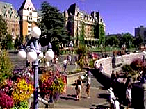 面对着港口,是一座维多利亚式的建筑,由英国的法兰西斯·拿顿贝利设计,于1893年动工,1897年10月完工,当时的拿顿贝利年仅25岁。园内耸立着维多利亚女王的铜像,中央圆顶部分是乔治·温哥华的铜像,议会内部分为地下一楼、一楼、二楼。在其中一、二楼间挂着一幅极大的画,描绘的是卑诗省的历史故事,大厅的彩色玻璃亦是一大特色,议会的内侧是图书馆。中庭的13:00~17:00,约每隔20