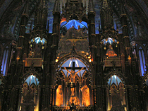 圣母大教堂(Basilique Notore-Dame)位于达尔姆广场对面,是一座新哥特式教堂。圣母大教堂金碧辉煌,一踏进大门,就浸入浪漫奢华与庄严肃穆的奇怪混合之中。宽敞高大的大厅,每一个装饰细节都充满艺术气息,都体现了“上帝”的富有。大厅通向更多的小厅,小厅则更为奢华。 蒙特利尔圣母大教堂是北美最大的教堂,建成于1829年,内有一个宗教博物馆,陈列