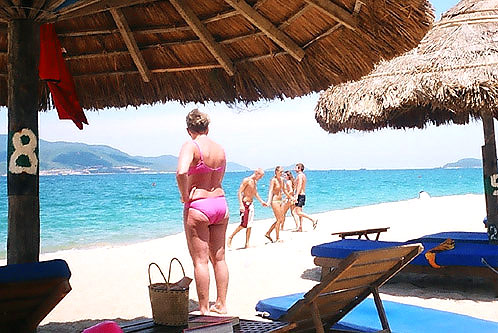 一出芽庄火车站,满眼都是摩托车。摩托车占据大街小巷是越南的一大特色。据说,晚饭后骑摩托车兜风,是越南年轻人最喜欢的消遣。我们晚上八九点钟在芽庄市中心的街道上,想横穿马路依然很困难,兜风的摩托车不给你从容过马路的机会。