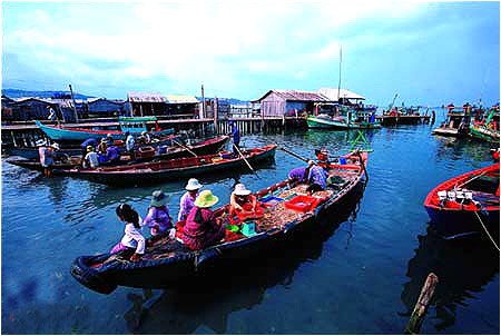 奥彻迭海滩无疑是四个海滩中最热闹的一个,照同伴的说法,仿佛西哈努克的游客都奔这海滩来了。孩子们也爱凑热闹的吧,于是奥彻迭也成了孩子们的天堂。他们肤色黝黑,在海水里翻腾跳跃,姿态娴熟优美如同蛟龙戏水。我把镜头对准他们,原想偷*几张,没想到孩子们发现了,更加花样百出地起劲表演,真是可爱。 索卡海滩是另一个极端,安静,安静得令人生疑。一样的蓝天绿树,碧海银沙,在四个海滩中,这里的沙滩是最宽广的。但沙滩上却游人寥寥,也不见商业化的休闲设施。沙滩周围没有林立的GH,只有一座大宾馆。宾馆的门面很气派,一长列的各国国