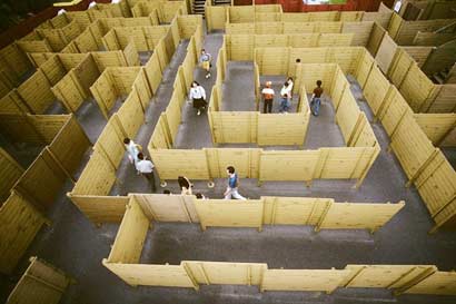人们在京都的一座迷宫中行走。迷宫探险在日本很流行。