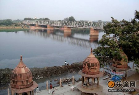 坐在旅馆的天台上凝望静静的亚穆纳河