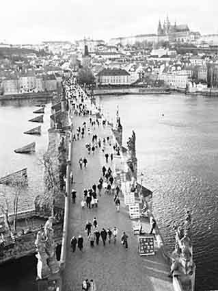 查理桥现状 (任鹏 摄) 看到135797531这样一串数字,能联想到什么?首尾美妙呼应的拱形不正是一座桥吗!这座以建造它的国王名字命名,象征和承载着这个国家光荣与历史、又洗尽铅华供人漫步赏玩的古石拱桥,就是布拉格的查理桥(Charles Bridge,捷语为Karluvmost)。 造桥的秘密 查理桥之所以得名,与当时盛极一时的国王查理四世(Charles Ⅳ,1316-1376)密不可分。这位头顶神圣罗马帝国皇帝尊号、“史上最出色的捷克人”将这串数字赐与他的桥,1357年9月7日5时31分,大桥正式破土动工。这种奇妙的排列由当时御用星象家测算,是祈祷坚固和永恒的咒语。在此之前,这里曾有一座建于1170年、名为“尤蒂斯桥”(Judith Bridge)的中世纪罗马式石桥,当时不仅是欧洲历史上第二古老的石桥,还是查理四世王都里唯一的水上