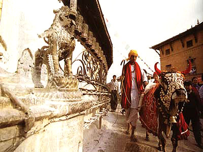 从早到晚,加德满都聚集着成百上千万的朝圣者按顺时针方向快步绕过佛塔,在此等待接受佛祖的启迪