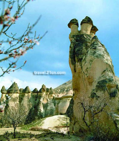 最后的基督盛世 在卡帕多西亚,修道士们采取了集体生活、集体修行的方法。修道士们更凭着对基督的崇拜,舍生忘死地挖成一个个岩洞教堂,在洞窟中度过他们的信仰生活。 8世纪到9世纪,拜占庭的统治者与基督教势力发生了严重的冲突。当时的统治者严令取缔圣像、圣物、圣迹崇拜,没收教会财产,强迫修道士还俗。这就是宗教史上著名的“圣像破坏运动”。不少洞室里的墙壁上描绘的这些令人费解的图案,就是那场运动的证明。 传统的基督教修行,往往是独自一人,而在卡帕多西亚,修道士们采取了集体生活、集体修行的方法。于是手无寸铁的修行者们,把自己当成了基督教军团的箭头,勇敢地与拜占庭统治者抗争着。手绘的十字爬满了他们的修行之所,他们还在柔软的火山岩石上孜孜不倦地建造着一座一座基督教的教堂与礼拜堂,并用拜占廷绘画进行了装饰。苹果树教堂、黑暗教堂和纽扣教堂都是按照那个时期主导的拜占廷式建筑风格装饰的。 卡帕多西亚基督教盛世的迎来,竟然是拜占廷人战败之后,在信仰伊斯兰教的塞尔柱人统治之下那段时期。由于塞尔柱人的宽容,基督教徒们无忧地生活着。伊拉拉峡谷中圣乔治教堂的塞尔柱苏丹梅萨德二世的画像便是那段历史最好的见证。那段时期,修道院被装饰一新,当地还出现了很多作为拜占庭拓荒者的贵族战士,他们努力抵御着阿拉伯入侵者,他们的战袍上绘着圣像。到13世纪时,卡帕多西亚的山洞已密如蜂巢。 然而,随着奥斯曼帝国的建立,身处回教腹地的卡帕多西亚终究抵挡不住历史的洪流。日益强盛的新宗教的力量席卷了整个安那托利亚。越来越多的人皈依了这个在当时有着先进思想和教义的新宗教。 14世纪时,卡帕多西