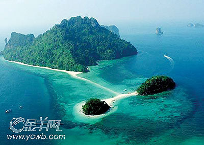 山,遇水则灵,水,遇山则清,山水合一,才能成为一幅画 。甲米的海景正是以其随处可见的石灰石山而著名。这里是熔岩区,山冒出海面,形成一座座形状各异的小岛,千姿百态,别有趣致。有名字的不多,大多是无名的;热闹的也不多,大多是冷清的,就这么随意地,好像被一只“看不见的手”撒落在碧绿海面,是甲米最抢眼的景致。也正因如此,比起普吉岛,甲米的明山秀水,更多了几分“清水出芙