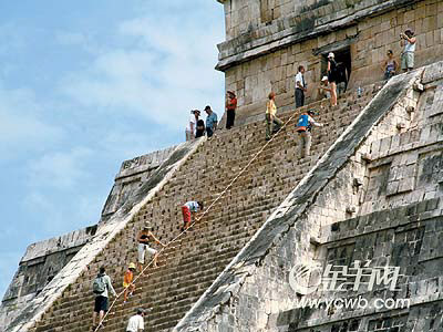 这里属热带的加勒比海地区,地势平坦的尤卡坦半岛上到处都是茂密的热带雨林,很多地方原始生态得到很好的保持,爬上库库尔坎金字塔顶,可见到四周不远处的古玛雅建筑群在浓密的热带雨林中露出顶部,在一片寂静之中令人联想到远古的神秘与大自然神奇的力量。