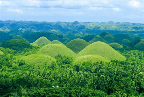 宿雾市之所以名传遐尔,除了海域水清景美之外,与西班牙著名航海家麦哲伦之地理上发现菲律宾群岛分不开。 宿雾的观光景点均与西班牙人或天主教发生关系,如:麦哲伦十字架亭(乃宿雾岛的标志)、圣婴教堂、仙毕多古堡等。唯一例外的是“龙山寺”和“王母寺”为华人集资建筑,内供奉佛、道、儒诸神,依山而筑,气派宏伟。菲律宾华侨社会有句俗语“富在宿雾,爽在怡朗”。在山寺周围的华宅可见一斑。 爱情见证 –– 波荷(BOHOL) 椭圆形的小岛波荷散布着众多古代遗迹,散发着神秘而迷人的气息,从巧克力山(chocolate hills),到16世纪的瞭望塔和Jesuit Baroque教堂。 巧克力山由1268个锥形小山丘构成,毫无疑问是该省最为著名的游览地。这些山丘在波荷部分布众多,其中两座已经发展成为了顶级度假村。每一段刻骨铭心的爱情,都少不了巧克力的出场。波荷的蜜月假期里,巧克力山仿佛一个天赐的礼物,专门为有情人准备的礼物。在菲律宾7,000多个岛屿中,波荷(Bohol)名列第十,位于宿雾的东南面。严格说来,除了大岛波荷以外,还包括了周边73个小岛,著名的Panglao、Cabilao也在其中。除了巧克力山之外,这里最值得游览的地方还包括菲律宾最古老的巴拉洋教堂,在这个地方你还能发现到世界上最小的猴子Tarsier,袖珍可爱。