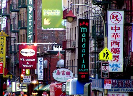 许多中国留学生毕业后都成功融入主流。他们在美国公司工作,一般居住在美国人社区。一个清华毕业生告诉我,她大学毕业后就来美国留学,现在作梦用的都是英语。留学生的第二代更是如此,根本不愿意讲中文。许多家长威逼利诱,让孩子周末去上唐人街中文学校,但效果不彰。因此,靠居住在美国人社区的华人家庭来传承中华文化是很难的。 唐人街是英文Chinatown的中文翻译。纽约华人有时称其为华埠,有时也叫它中国街。它是中国人聚居地和商业区。目前,纽约有三个公认