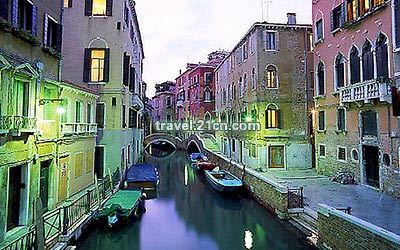 我们乘船来到市区,第一个威尼斯的印象是从水上看到的。蓝色的天,蓝色的海,一座宫殿式的城市端坐在海上。上岸后,导游指着岸边一家叫“达尼埃里