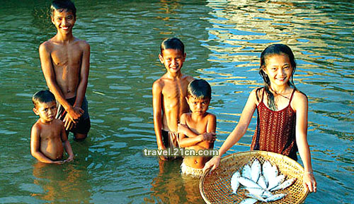 在国内,喝咖啡好像是那些白领小资才有的享受,而在越南,路边树林里都到处可见喝咖啡的地方。但不是那种用咖啡壶煮的,而是用一个特殊的铝制滴滤杯,再把滴下的浓浓咖啡冲到装满冰快的玻璃杯里。途中休息时,躺在树林间的吊床,品尝着这风味独特的冰咖啡,除了醇香,还有悠闲,实在是一种无以名状的享受。 长达7公里的芽庄海滩,是越南最漂亮的海滩,沙白细软,水清荡漾。第二天早上起来跳进海里,回味着昨晚让人如此解馋的海鲜,妙不可言,旅途疲劳和人生烦恼,通通释然。