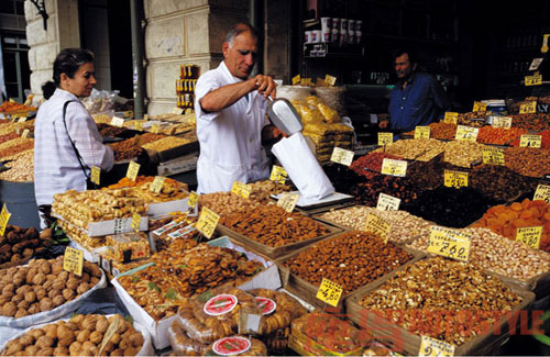 美食比较讲究的要属纳克索斯岛。在岛上,花上几欧元就可以吃到当地地道的小吃烤章鱼脚。以香橼叶为原料制成的酒精饮料著称,香橼其实很像大颗的柠檬。烤肉、鱼、新鲜蔬菜、甜酒、乳酪以及以香椿叶制成的酒品则不得不尝,这些都是岛上的特产,是岛上居民最引以为傲的。要吃到这些美食又要看纳克索斯滨海的美丽景色,当然要到海滨的特色饭馆去。正是抓住了游客的这种想法,纳克索斯岛上海滨的饭店最多,菜也最具小岛特色。这里距离雅典大约1