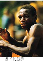 大酋长对中国很有感情 恍恍惚惚睡了几个钟头,天已大亮。不一会儿,侍女们又鱼贯而入顶着食盒送早餐来了,丰盛依然。吃罢早餐,我们一行便又来到大酋长的城堡门前,等候门官传呼。这时,城堡前的土场上聚集了许多男男女女,围着圈跳舞,舞步单调重复,两个汉子坐在圈中央,挥汗如雨地用手掌击打着夹在胯下的非洲鼓。 随着鼓点的变化,这些跳舞人的歌声亦时而激越时而低沉,时而又像在委婉地诉说着什么。我问阿布杜拉,这些人是些什么人?歌的内容是什么?他说,这是下边部落的子民来向大酋长乞求赐物的,酋长如果没有一点表示,那他们会永无休止地在城堡门前跳下去。 这时,门官从城堡里出来了。他说:“木巴大酋长在等你们,我领你们进去吧!”我们欣喜而又有一点紧张地跟在门官后边。走到门口,布巴和阿布杜拉便被挡住了,卫士说:“大酋长只见你们两位白人,这两位黑人不能进去。”我赶紧说:“这两位黑