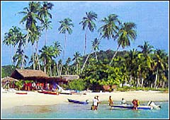 ![]() 鱼群丰富的棉花岛是潜水者的乐园 绿中海 水上屋里看碧海蓝天 “当这上天赐予凡间的美丽天堂出现在我眼前,我的眼泪几乎夺眶而出。”这是1995年,帕瓦罗蒂第一次到绿中海度假村后发出的感叹。 我们从吉隆坡机场经过4个小时的汽车,又坐了近一个小时的轮船后来到绿中海。当