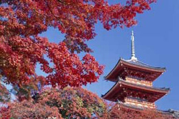 清水寺香火很旺,很多人还来这里求良缘。半山腰的“地主神社”里挤满了前来祈愿良缘的人。院子里有两处相隔10米的天然石头。据称如果闭着眼睛从一块石头一次性成功地走到另一块石头,那么你很快就能找到理想的伴侣并白头偕老。几名老外兴致勃勃地在那里轮流玩着,几乎每个人都姻缘美满!