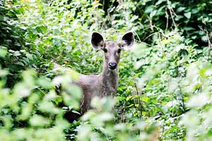 地上出现老虎脚印 国家公园内设有科比特纪念馆和博物馆,里头有不少老虎的标本。 旅程就快结束,老虎还是毫无踪影,大家也越来越着急。这时,向导突然发现地上有老虎脚印,大家立刻精神抖擞,聚精会神地观察四周。 再往树林深处开去,突然听到一阵不安焦躁的啼叫声。经验丰富的向导立刻说,这是老虎在附近出没的征兆。这时司机立刻关上了吉普车的引擎,大家也停止讲话,甚至连呼吸都不敢太大声。我们挺直了身躯,试图让视线看得更远一些,静静等待老虎的出现。 此起彼落的啼声让人精神紧绷,老虎随时随地有可能从某个角落跳出来吓我们一跳。然而,老虎似乎有心和我