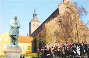 这些私人物品感到很亲切,让我觉得作家仍在房间里奋笔疾书,为全世界的儿童创作童话故事。站在那些手稿前,我很仔细地辨认每一个字母,以便确定它是哪篇童话的原稿,每确定出一篇,我就被一阵欣喜所笼罩。在游览过程中,我同当地的孩子及游客登台表演了一些妇孺皆知的童话,包括《豌豆公主》《小锡兵》和《海的女儿》等。《海的女儿》中的小美人鱼已经成为哥本哈根的标志,遥望大海的那双凄美的眼睛,让我回到了童年的回忆中。