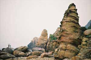 位于濂洞的阴阳海与鼻头角之间的南雅,在滨海公路未通车前,和鼻头同样是一个热闹的渔港。如今依稀仍可看到一些老渔船停泊旧海港。相比之下,南雅较为“平易近人”,海岸与公路近在咫尺,乘搭往返海滨公路的公车肯定不会错过奇特的岩石,无须消耗多少体力亦能赏海景。 南雅除了海蚀礁岸,著名的风化石像立体的雕塑品,矗立在海岸上,有艺术之美。南雅风化纹地形为台湾所罕见,砂岩中的节理经风化作用造成含铁矿物氧化,而显露出氧化铁的带状花纹。一尊尊排列整齐的风化石乍看下似软绵绵的蛋糕又像冰淇淋,引人入胜。 热爱摄影的我们最开心的莫过于眼前的这些风化石和手册上看到的图片一样动人;在旅途中,偶尔发现某些景物和手册内