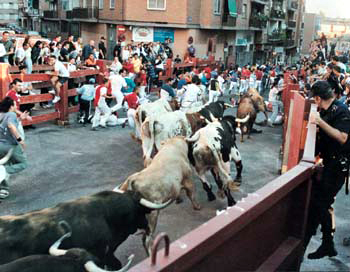 奔牛节的庆典历史可以追溯至公元1591年前,当时庞普洛纳的居民就已经用这种特殊的奔牛活动来庆祝圣佛明节了。节庆的第一天会由市政厅广场发出火箭炮揭开序幕,在接下来连续7天7夜里,各项庆典活动包括音乐、艺文、露天舞会等等,年轻人总通宵达旦的开心享乐,白天则是兴趣盎然的参加奔牛节的活动,享受被牛追逐的刺激感受。 每年的7月6日至14日,被形容为世上你能活得最快活的一周的圣佛明节(Fiesta de San Fermin)于这里举行,一辆又一辆爆满的旅游巴士把世界各地的旅人送到这里寻欢作乐,忘记还有明天的那种疯狂享乐。<