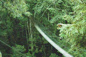 丛林小屋挂着中国的马灯 5月初的秘鲁已是秋天,早晚透着些许凉意。但当我们的班机到达秘鲁东南的马尔多纳多时,一股热浪携带雨林气息扑面而来。沿着望不到头的亚马孙河一路深入,二三百米宽的水面两边全是丛林。水很浑浊,天却是蓝的;河上静悄悄,只有快艇劈波斩浪。45分钟后,我们到达住处———掩藏在丛林中、高高架起的小木屋。屋里没电,只有“中国制造”的马灯。傍晚时分,每屋门口都挂起一盏,星星点点,煞是好看。 早听说亚马孙丛林是世界上物种最丰富的地区,全世界已定的植物有2.7万种,这里