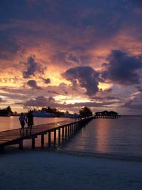 天堂岛(Paradise Island)与马累国际机场仅有20分钟的摆渡。我踏上天堂岛时,天色已经黑了下来,记不得海水、海浪以及专程迎载我们的VILLA集团的小快艇的模样,湿湿的空气团簇着我,就想快到天堂岛,把身上黏糊糊的毛衣、衬衣脱下来,在经过一段长达百米的栈桥后,我们与天堂岛的总经理MAHMOOD SHVJAU——一位慈祥、面色深棕色的老人见面后,就直奔客房。热热的水、清凉的矿泉、宽大的床、24度的空调,爽!怪了,只躺了一刻钟,便有了走岛看景的冲动。