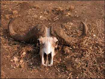 白天在丛林中行走的时候,天上盘旋的秃鹫、林间鸣叫的知更鸟、翔食雀、斑鸠、犀鸟以及不时在地上跳出的珍珠鸟也无时不在陪伴着我们,给我们的旅行增添了不少乐趣。黑斑羚是一种充满灵性、极为敏感的动物,它们远远地就能听到我们的脚步声然后四散跳开。目睹它们跳跃实在是一种享受,那优美的姿势完全可以和最优秀的芭蕾舞演员的表演媲美。比起黑斑羚,狒狒们可是相对大胆泼皮得多。有一次,我们和一只孤独的狒狒相遇,它毫不介意我们,自顾自地在一个木桩前坐下,完全沉浸于自己的心事中。行动迅捷的獴则从来都是集体行动的。