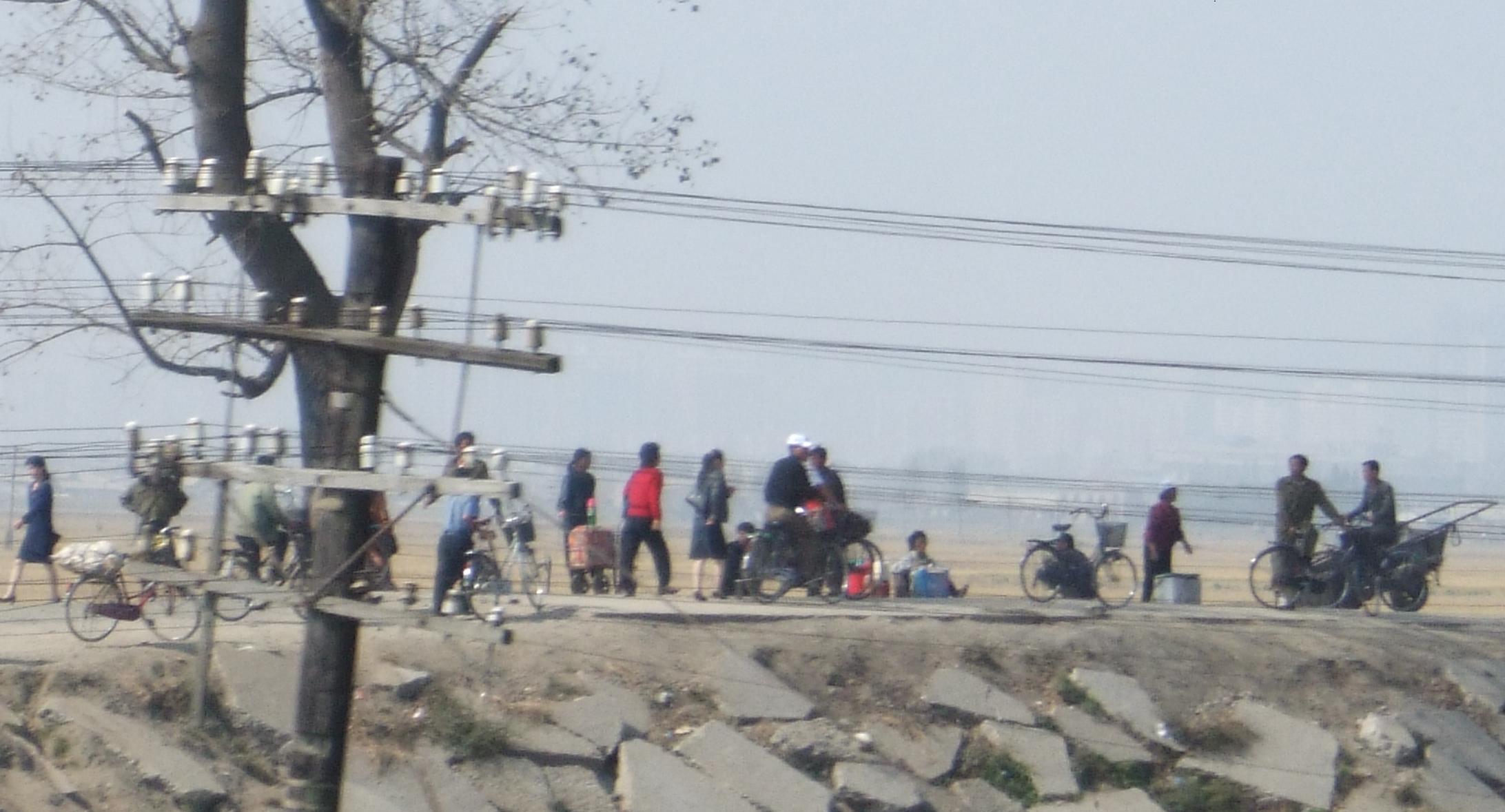 朝鲜,现存最后一个完全铁幕下的国家,那里所有人看起来都试图告诉你他们有多幸福,有多满足,与之相悖的就全是禁忌,我说不清他们是企图遮羞还是过分自尊,或者是不愿表露内心某种行将喷勃而出的渴望。 一次在其他游客购物的时候,我溜到大街上去看下班的人群,当我准备混在人群里进入地下通道的时候,一个女导游不知从哪里蹦出来活生生把我揪了回去,从此再没离开我半步。在我又一次试图逃离她视线未果后,她终于愤懑地抗议道,“你到底想看什么啊!”。从此我放弃了抗争,也不知道该怎么表达我到底想看什么,怎么解释一个旅行者的天性,怎么让她明白其实我只是想和普通的路人凑巧撞下肩膀再相视一笑而过的愿望。当交流成为一种灌输,沟通成为某种恐惧,我只能无奈地保持距离,暗恋那样假装满不在意的同时,伸长脖子瞪圆了眼睛去发现点点滴滴与传说和臆想中不同的事物。 很多很多的潜移默化,恐怕很多朝鲜人自己都还没意识到,但却实实在在地正在发生着。中国人是过来人,我们知道那究竟意味着什么。 最令人欣喜的变化 和传说中相比最令人欣喜的变化是,今年2000多万朝鲜人民应该至少不至于闹饥荒了。我们所看见的乡村地头都是收获在望的情景,庄稼即便不如国内那样粗壮饱满,但总算没见到落荒的田地,一些农家的院子里还种着蔬菜养着家禽。看村民的情绪似乎也是不错,尽管仍然辛劳,尽管仍能看出赤贫的影子,但活下去这个生物层的需求,看来能够被满足。 我们几天来的每日三餐也挺能说明问题,简单形容就是“管够、有肉、不加菜”。无论在哪里吃,粥、饭、馒头这样的主食绝对管够,吃完桌上的招呼一下就能再来一份甚至更多。每顿饭都至少有一个通常是两个荤菜,数量不是很多,吃起来也总是干巴巴没有油水,可以想象肉食在普通朝鲜人家里仍然是奢侈品。更奢侈的是吃蔬菜,4天时间只有第一顿晚餐有一盘切成块的黄瓜,此后所谓蔬菜就全都是泡菜了,就算要求多加份泡菜也经常被拒绝,水果更是稀缺到不见。可以想象,整个国家的耕地差不多都拿去种粮食了,毕竟“生存权是最大的人权”,其他事情可以等长了结石后再去考虑也不迟。 最有现实意义的变化 商业层面的变化绝对最有现实意义,尽管我们匆匆打眼也就那么一看,别说,还真看到不少。 城市边缘开始有了摆摊儿的。下面的照片也是在新义州到平壤的火车上拍的,在某个城乡结合部的路上人来人往,其中几个人显然是面冲人流坐在了地上,面前摆着篮子、筐还有盒子,只要不是贪得无厌的乞丐就一定是摆摊的商贩。右边戴白帽子的似乎在和个回头观望的男人讲着价钱,一笔不知是否被保护的交易在进行中。