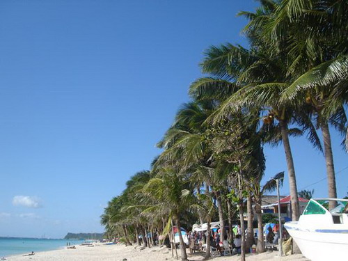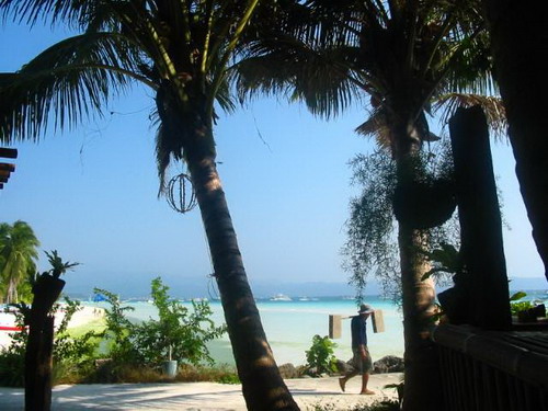 听朋友描述菲律宾长滩美得像人间天堂一般,阳光、沙滩、海洋,都是超浪漫的。正好网上看了旅游族的推荐,4000不到一点,蛮超值的。所以参加了这次的马尼拉长滩岛5日游。 第1天 上海-马尼拉 从上海浦东机场搭乘豪华客机飞往菲律宾首都马尼拉。一出机场就有人来接我们,由旅游公司人员迎接于机场后前往酒店休息。 第2天 马尼拉-波拉克长滩 早餐后乘菲律宾国内航机飞往长滩,抵达后转车前往码头,跳上快船直往菲律宾目前最新、宣传最劲的观光地点之一波拉克长滩岛。波拉克岛是位于未狮耶群岛东南面的一个宁静海滩, 是神仙捧下变幻出的奇丽小岛,小岛均设有度假式酒店, 蔓生着翡绿的椰子树,拥有沙白如粉的白沙滩,沿岸一带的色彩斑斓珊瑚及鱼群,令人难以忘怀,多姿多彩的海洋生物更是潜水一族的乐士。10分钟左右的时间,此时的海水已经清得让人折服。 假如说亚龙湾是个被上帝宠坏了的地方的话,那长滩就是个被宠坏得让人嫉妒的地方。那里有湛蓝如玉的海水,细白如粉的沙滩,郁郁葱葱的椰林,风情万种的生活。阳光明媚下的长滩美如画,夕阳下的长滩让人陶醉, 夜色下的长滩热闹非凡。 第3天 波拉克长滩岛出海 今天终于可以看到美丽的大海了。大海太美了,海蓝的是那么的多彩,与蓝天白云是那么的协调, 深的浅的如同蓝色的水晶般在阳光下闪耀着迷人的光彩。我陶醉了。长滩的沙滩是白色的,很细软,赤脚走在上面感觉微微的温热,海风热情的吹拂你的脸庞,椰林轻声欢畅。真是天上人间啊! 长滩岛也是着名的潜水地点,船带我们绕岛一周,到了海中央的地方我们就可以自行下海潜水。教练让我们先看好他们的示范怎样下海。人坐在船身背对着大海穿上装备,右手护住呼吸器与面镜,左手放在后脑勺,人向后翻下海去。本来还不怎么害怕,看见这样的下海动作,开始有点哆嗦了,因为我不会游泳。教练鼓励我,终于我一狠心翻身下去,只觉得人完全浸入海水后,身体慢慢浮出海面了。潜水中教练要求我们要看着他的眼睛手势,不要乱碰海洋生物,因为有的是很危险的。开始我还怕眼睛进水不敢把头扎下去,后来发现海底世界是那么的美丽。各种各样的彩色鱼儿在身边游来游去,还有蓝色的大海星在岩石上缓慢的移动!看到美丽的小丑鱼,与动画片中一模一样,还看到毒性很厉害的海蛇,很好玩的狮子鱼等等。教练不但为我们拍照,还为那些海洋生物拍照。我们终于完成了一次海底历险吧。 回到海边太阳已然偏西了。我们沿着沙滩赤足漫步,细软的白沙保留着落日的余温,潮水卷着纤柔的海草,温柔的拍打着我怕痒的脚丫。眼前,是一片红霞满天的世界;鼻尖,是一缕清新暖湿的海风。夕阳西下,一艘艘出海的帆船在天边的余辉中慢慢靠岸,五彩斑斓的船帆先是被蒙了一层金边,渐渐的又被晚霞所染红,只留下一个个移动的剪影,像是一出真真切切的皮影戏。这时候,岸边的酒店和餐厅都纷纷将实木案几和松软的靠垫摊在沙滩上,并在四周支起一盏盏烛灯,有些镶嵌着一枚枚晶莹雪白的贝壳,透出氤氲迷离的光,配着轻柔的jazz或者塬住民音乐,浪漫得让人几乎忘记了果腹之欲。 第4天 波拉克长滩岛—马尼拉 今天决定好好享受阳光,我们准备早上去海边游泳。吃完早餐我们漫步在海边沙滩,站在白沙滩上面对着大海,海水由浅到深,从细沙的白色到浅绿到浅蓝,再深蓝,最后是蓝蓝的天空白白的云,每种颜色都那么纯粹,忽然觉得词汇的苍白,海滩上人很少,三三两两的享受着阳光、沙滩,很羡慕当地人的健康肤色。让双脚浸泡在清澈的海水中,一阵阵凉意袭来,无比美妙舒服。清晨的海滩实在漂亮。经过一晚涨退潮后,沙滩上的污物已经给潮水带去,只剩下冲刷得雪白平整的海滩,蓝蓝的天,清澈的海水还有凉爽的海风。沙滩的沙子光洁细滑,没有石头等的杂物,,赤脚踩在沙滩上玩水就好像踩在地毯般舒服,实在让人全身心的放松。吹着海风,听着海浪,看着偶尔一只帆船漂过,忽然觉得这才叫生活,这才叫惬意啊。 玩累了就坐在沙滩的椅子上晒晒太阳,看看风景,下海玩一会儿,没想到浅滩就有很多小鱼,追逐着小鱼游来游去非常有意思,水特别清,清澈见底,脚下的沙尤其细软,一点都没有沙子硌脚的感觉,细腻得像面粉,简直难以想象,特别是往海里走百八十米脚底都是这样平滑细腻的感觉,海面上风平浪静,最适合游泳和玩水。踩着这样的沙滩就像在享受脚底按摩,导致我后面几天只要一有机会就光脚踩在沙里,吃饭也好,散步也好,抓紧一切和白沙滩亲近的机会。好奇得抓起一把沙想仔细看看,洁白细腻纯粹,阳光的照耀下晶莹剔透,风轻轻一吹就四处飞散开来。看到有人长久得躺在沙滩和海水的交界处,任凭海水随着浪花冲到身上,看起来很享受的样子。于是我也尝试了一下,果然很舒服,就像躺在记忆床垫上一样。就是有一点,沙子弄到头发上后比较难清理,因为它们实在太细了。不小心喝到一点海水,居然也不难喝。 下午的项目是滑翔伞和坐帆船出海看夕阳。坐了将近10分钟快艇离开海岸,在深海处上了玩滑翔伞的大汽艇,几个船员给我们穿上救生衣,接着船员们把五颜六色的漂亮滑翔伞在船后面打开,系好我们的安全带,忽然加快船速,我们呼的一下被放了起来,绳子越拉越长,船越来越小,我们也越升越高,还来不及害怕,已经升到很高很高了,一根绳子系在我们和船中间,拽着我们跑啊