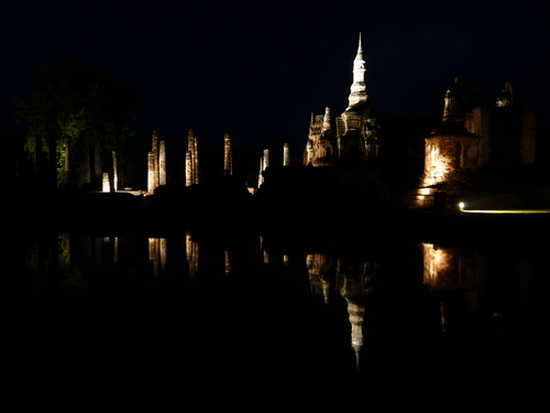 去素可泰主要就是去看素可泰历史公园,关于这个公园的相关介绍这里就不罗嗦了,大家可以查资料。下面主要介绍一下我在2008年5月所经历的关于素可泰的行,住,玩。 行: 如何到达素可泰 可以从曼谷去,也可以从清迈去。从曼谷去素可泰可以在靠山路坐3路公共汽车到曼谷北部的那个汽车站。我是从清迈去的素可泰,从清迈古城内坐TUKTUK,两个人50B到达清迈新城东北方向的汽车站(Arcade bus station)。 过了这个时间,要想从旧城回新城就比较麻烦了,不过还是有办法,除了徒步之外办法有三:1、租摩托车或者自行车回去。2、坐电动三轮车回去,两个人大概要100-140B左右,具体价格看你的侃价能力,不过这种三轮车很少,而且19:30以后几乎就没有回新城的电动三轮。3、求助警察叔叔帮你拦过路车搭你回去,这可是要看你运气啦,不过我们还真是有这运气,我们第一天就是在警察叔叔的帮助下,搭了一辆警车把我们送到了新城,而且是free啊,真是让我感觉温暖。 旧城BUS终点站就在历史公园门口,这里有好多家出租自行车和摩托车的店铺,摩托车每天200B,用护照做抵押,汽油自理。自行车我没租过,价格不详,不过不贵。如果懒得走路,那既可以在新城也可以在旧城租车。 素可泰到曼谷,最晚一班是23:00,订票方法有二 1、可以在新城的汽车站买票,这样的话你就必须要在新城的汽车站上车。 2、在旧城订票,然后在旧城上车。这种方式的好处是你可以安心的看完素可泰的夜景,然后稳稳当当的吃个饭,之后在旧城上车,避免了赶往新城的麻烦。在旧城订票的话,有两个夜车和一个白天的车可以选择。晚上的两个车一个是20:30发车,一个是21:00发车。建议至少提前20分钟候车。夜车票价是339B/人,白天的车要更贵一些。 我们是在旧城订的21:00去曼谷的票,结果20:45的时候汽车就来了,在旧城接上我们之后又开到新城的那个汽车站,直到21:40才发车。到达曼谷汽车北站的时间是凌晨3:30,下车后在7-11便利店方向有一个出口,沿出口到公交车站,坐3路公交车到靠山路,票价是8.5B/人。到胜利纪念碑是77路。 我们在旧城订票的地方是一对老夫妇开的,门面不大,门口立着招牌,门口的桌子上立着一个英文的价目时间表,不过老夫妇不会英语,我们订票的时候也就是拿着月份牌比比画画的就成了。由此也感叹,老两口不会英语也一样做生意,另外就是泰国的民风实在是让人感觉和善啊。订票的地点就在旧城BUS终点站往东大约二十多米的地方,旁边有很多饭店客栈店铺,只要沿街挨个看就能找到,很明显,斜对面是一个警察执勤的岗亭。 住: 可以住在新城,也可以住在旧城。 住新城的话,就需要每天往返于新城和旧城,比较麻烦,但是客栈选择和网上关于新城住宿的信息较多。价格也不贵,各种条件的都有。我是住在传说中的JJ HOUSE。这是一家上了LP的客栈,不过我对这里的印象不太好,这家客栈的住宿条件还可以,有很多选择,不过老板娘不太厚道,我们两次询问去旧城的车票价格,她都告诉我们是30B,而且男主人在车站拉客时的一些行为让我们对这家店做生意的理念不敢苟同。 旧城距离历史公园很近的地方也有好几家客栈,但是我们没有住过,所以没有太多发言权,不过我们看到好多欧美游客住在旧城的客栈里。住在旧城的话就不用傍晚赶着时间回新城了,从这里上车回曼谷也很方便,吃住购物也都方便,所以我还是推荐住在旧城。 玩: 到素可泰主要就是在旧城的历史公园附近游览,关于公园及周边的介绍网上有很多,我就不多说了。特别强调一下,每周五到周日的晚上,公园内部的遗址都会点亮灯光,遗址的夜景很不错,尤其是其中的WAT MAHATHAT,在夜晚灯光的照射下,在野狗的吠声和鸽子的扑腾声的映衬下,还真是显得有些“阴森恐怖”呢。 因为白天确实是太热了,所以游览公园比较好的时间是一早一晚,尤其晚上,夕阳西下,晚霞初映,绝对是谋杀照片的好地方。 综上,推荐泰北线路如下:曼谷-清迈-素可泰-曼谷。坐清迈到素可泰的大巴进入素可泰地区后,跟司机说在旧城下车,住在旧城,玩在旧城,吃在旧城,订票在旧城,上车回曼谷也在旧城,不必经过新城。 另,所谓旧城就是指历史公园,公园东门外有一条街,包罗万象一切事情皆可在此搞定,实在有困难的话,记得找警察叔叔帮忙。