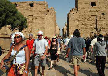 卢克索 虽然远古时代的底比斯曾是埃及的国都,但现在的卢克索,在我看来只是一个紧凑的有很多街边店铺的小城镇。西岸——太阳落山的地方被视为死人居住的地方,那里有国王谷和王后谷——秃秃的山谷中挖凿的陵墓。东岸是居民居住的地方,还有卡尔纳克神庙和卢克索神庙。 卡尔纳克神庙这个如雷贯耳的名字出现在阿加莎克里斯蒂的小说《尼罗河惨案》中,它是底比斯最为古老的神庙,因为其规模宏大而扬名世界,占地超过半个曼哈顿城区。它也是地球上最大的用柱子支撑的寺庙,多柱厅由134根12-23米高的柱子支起,柱顶呈开放的纸莎草花形状,可以容纳50人站立其上。高耸的石柱给人以震撼的感觉,《尼罗河惨案》中那个从柱子上推下巨石,企图谋杀新婚妻子的场景就发生在这里。 卢克索神庙的大门处有两座高大的拉美西斯二世坐像,神殿内,有两行以合拢纸莎草为柱头的柱子,内厅左侧是一个小小的清真寺。外部有一条狮身羊头神道。 很偶然地与在帆船上相遇的三个菲裔美国人住在一家酒店,大家高兴地相约一起到餐馆吃晚餐,同去的还有路上偶遇的一对奇特的组合——一位约四五十岁的男性美国潜水教练和一个在美国读大学的泰裔男生结伴去东南亚潜水。饭后,我们你一口我一口兴致勃勃地品尝了埃及的水烟(Shisha),挺呛的。大家还好奇地请教我中文那些骂人的话,并要求我写下来,我很自然地书写,他们却惊叹我能够如此飞快地写出如此复杂的字。我也向他们学习了两个小游戏,一个是用盘子和刀叉猜时间,另一个是美国纸牌游戏。