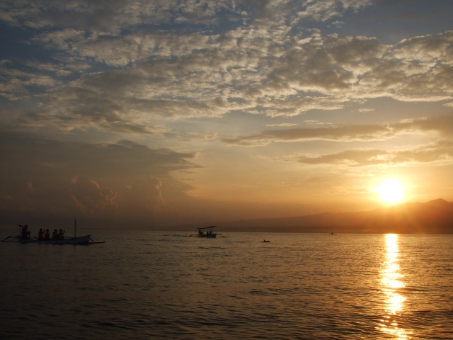 11.12 PVG 出关一如网上所述的容易,pvg的官员只是对我深夜出关表示了一点诧异,护照上已然鲜艳的印上了一记出境章。心里的激动是难以表述的,这小小一方印戳,却仿佛生命里一段里程碑。 23:40开始登机,鱼儿出门以后仿若小孩子,看着美丽的新姐推着美食款款走来,只好眨巴着眼睛,随着我说same same.可怜的孩子,他想要cocktails,但是我终因羞涩没有开口。鱼儿只好鼻涕涟涟的睡了去。 11.13 Singapore to Bali, Kuta 05:07航班抵达新加坡。从飞机上看这座城市,和上海并无二致。转机有4个多小时的空档。小心翼翼辗转在transfer channel,直到抬眼看到屏幕上SQ 942的登机口F31,便放下心来。鱼儿于是开始忙着找吸烟室,而我趁机在机场computer上给教授发了封邮件。新加坡机场有一项设施超级体贴:Usqueez脚底按摩机,free and comfortable. 中午时分,航班准时抵达denpassa机场,行李也早已守候在那里等着我们。巴厘岛的官员很和气,VOA办的亦很顺利。出了关,就看到一众举着牌子的司机。接我们的sorgawi酒店两位小伙子带我们先去了一家兑换点换钱,这其中却无意让我们发现了一个小秘密:千万只相信自己的计算器! 酒店是家family inn,虽然简陋了点,特别是游泳池,小得好象只能养蝌蚪,但是这家的人却很好。鱼儿给了5000卢布的小费,我们也于是开始了假富人的生活。 因为畏惧岛上的食物,晚餐索性在海滩对面的pizza hut解决。可是,味道却是不敢恭维。早已知道kuta的海滩没有三亚的绵延干净,因而对海滩的期待没有鱼儿强烈。可是鱼儿因为牙痛和感冒,对这些身边之物已提不起大的兴致。晚上沿着legian street溜达,每每被误认为是日本人,我们也只是笑而没有辩驳。都说印尼排华,然这些天来看,至少在巴厘岛,印尼人民是友好亦善良的。路过一家Espresso Bar,现场的live show很有吸引力,我们遂坐了下来,要了bintang beer听起了英文情歌,直到受不了蚊子的骚扰,才记起要去买防蚊液。kuta有两家品牌超市,mini market和circle K,后者没有前者普遍,但是却要便宜。 11.14 Kuta to Lovina 买了sinpati电话卡,弄了半天总算搞懂了怎样发消息和打电话。中午11点钟,Herman的人已坐在酒店等我们。Herman和他的公司是我无意中的发现,后来的接触亦证明这家的人很是不错。Kedu是Herman派来给我们的司机,蛮帅的,干净,人打理得很整洁。看得出务实却不滑头。鱼儿后来给了5万卢布的小费。第二天又追加了2万的午餐费和停车费,亦出手很大方 。 早上起来发现喉咙破了,可能因为辗转劳碌,但是嗓子却漂亮起来。鱼儿还是病怏怏的。去Lovina一路上,经过植物园和火山&双子湖,遇到风景尤美的,kedu自会停下来让我们拍照,甚是体贴。鱼儿对庙宇没有多少兴致,因此我们只是远远望望而已,或者在车里瞥一眼,匆匆过路。心里记挂着lovina的美好,路边的小花小草就罢了。 来到villa agung,这是攻略上从未提及的一家小客栈。却讶叹它的美丽!小小的beach inn,曼妙然就躺在lovina的海滩上,碧绿的泳池,黄昏的海滩了无人迹,静静的酒吧直面着海,比肩对坐,落日斜阳,今世的浪漫,来的这般令人神醉。傍晚时分,看客栈的主人Gus和Susan,伴着一盏烛台,在beach bar品酒聊天,不远处渔船的灯火星星点点,海面平和风轻...那一刻,勾起了无限的向往。 夜里,睡前,又拉着鱼儿的手,在海滩上小坐,鱼儿吐着烟圈,神色迷醉:“为什么夜里大海总是这样呼吸?” Gus的酒店指南里赫然印着这样一句话:Both love and money are easily lost to the Balinese charm. Be careful.这是真的。 11.15 Lovina/Ubud 5点半就爬起了床,Herman派来的人已然等在小酒吧里。天蒙蒙亮,面海的吧台上未烬的浮烛依然飘零,伴着沙滩上行单影只的狗狗和远处缓缓驶过来的渔船。到6点钟,接到又两个老外,船夫遂领我们上了久闻大名的蜘蛛船,因窄窄的船身配有铁钩子一样的脚而得名。船夫少言。同行的两个小伙子言谈甚欢,鱼儿受着牙痛的折磨,兴致并不显高。剩下我,忙着记录日出的轨迹,倒也不亦乐乎。船渐渐离岸远了,岸边一切已经模糊。身后的小伙子于是大叫:dolphin..可是待我对准镜头,这些活泼的小东西却早已隐没在海中。如此折腾了数个回合,只隐隐见着小海豚的影子兜来晃去,大个子的家伙一个没现,海豚儿亦没有在我们船头嬉戏片刻。庆幸的是,反倒抓拍了一堆日出的壮丽,心下也平衡,遂随着船夫回了去。其间看同船的两个黄毛小伙潜了会水,也忍不住戴上他们的潜水镜把玩,可惜脖子太短,无奈连海面也近不了。这一行始终是超值的,只在清晨与爱人于这海中间的感觉,细密的海风,冉冉的朝阳,周围追逐伴随的蜘蛛船... 离开Villa Agung是不舍得的。好想再来Lovina。和鱼儿,这里就像是梦开始的地方。 Kedu的车经过batur火山区,拣了两处风景尤美的地方拍了照,照片后来亦成了经典。再然后经过Tegallalang,并没有依着攻略去找铺子,只听了Kedu的拣了一家买齐了所需。这已是鱼儿的习惯。回到车上,我还在流连不舍,Kedu的车已稳稳停在Bingtang Bali Bungalow的门外。隐蔽的一处family inn,果真不起眼,可是踱进屋里,风光立时无限好。一方麦田,一席瑜伽毯,一座茅亭,一池碧水,四时花草,缤纷果汁,仆人环绕...原来,Ubud这个地方,随处都是世外桃源。 今天是教授生日,Lovina清晨的问候希望给他留下不一样的特别。原本想去邮局寄一张明信片,可不巧邮局4点就关门了。最终没能够印上这一天的邮戳。 入住的酒店宛然就在猴林路上,隔壁就是