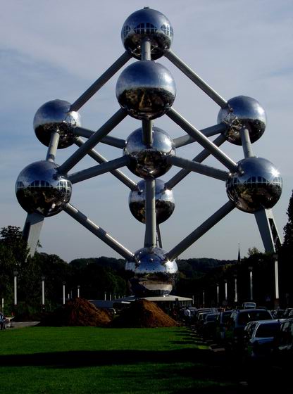 原子球塔位于布鲁塞尔西北部,是途中经过的第一个景点。那是一组原子结构形的钢铁建筑,故名原子球,又称原子博物馆。是为纪念1958年布鲁塞尔世界博览会而兴建的。它一共有9个球,每个球直径达