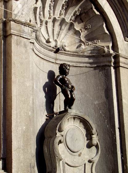 在大广场北面竖立着世界著名的马坎尼比斯像,即“撒尿小童”的铜像,铜像高半米左右,是个光身叉腰撒尿的儿童,形象逼真。据说这位小男孩用一泡尿浇灭了进犯者的导火索,拯救了全市居民,故立此像来纪念他。各国的游客、包括我们在内都纷纷在“尿尿小童”的铜像下留影。