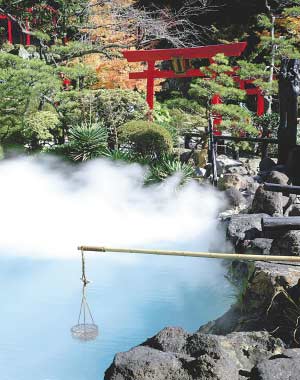 巡游“地狱”尝温泉美食 在很久很久以前,别府人就把喷射地底热气的温泉称为“地狱”。地狱本是佛教中的用语,象征着苦难的世界。几千年前,火山爆发喷发的热气把岩石都化成了粘土,方圆数公里寸草不生。看到如此荒凉的景色,别府人不由恐惧,便称之为“地狱”。 在“地狱”中最出名的是“海地狱”,是1200年前鹤见岳火山喷发造成的,常年保持98℃高温。这里由于富含硫磺铁的泉水,在阳光折射下,闪耀着琉璃般的湛蓝而得名。而著名的“温泉蛋”是每一个游客都不应该错过的美味。导游将一筐生鸡蛋放进“海地狱”里,5分钟后,鲜嫩可口的煮鸡蛋就好了,蛋黄松软清香。“温泉布丁”也是特色温泉美食,用蒸气制作而成,尝起来同时具有鸡蛋及牛奶的浓郁。此外,当地最有名的一道乡土料理“地狱蒸”,是用温泉蒸熟新鲜海产及蔬菜,对于崇尚清淡少油的现代人,称得上是健康饮食。 从“海地狱”出来之后,我们又依次参观了“血池地狱”、“鬼石坊主地狱”和“龙卷地狱”。“血池地狱”表面温度高达78摄氏度,好像一池子翻滚的血浆,夹杂着轰隆声。当地人把这种泥收集起来,制成了“血池软膏”,可以治疗脚气,对皮肤瘙痒症也极其有效。 “鬼石坊主地狱”和其他几个地狱有点差别,冒出来的不是温泉水,而是一个个水泥泡泡,气泡破裂的瞬间发出“噗噗”的声响。“龙卷地狱”是个典型的间歇泉,每隔30分钟喷水一次,每次喷水七八分钟,喷出的水柱约有50米,温度至少达到当地沸点。游客整整齐齐坐在龙卷温泉前的观赏台阶上,温泉“哧哧”喷出来的刹那间,掌声响成一片。 别府,除了“地狱”胜景,还有著名的“八汤”,也就是铁轮、龟川、别府、柴石、明、堀田、滨协、观海寺八个名汤,每个地方的泉水都有不同泉质,殊异的疗效。 温泉:别府温泉对外开放的温泉达400多处。温泉宾馆价格相对较高,温泉旅馆相当便宜,有多人住宿的大间,一般1500日元每晚,折合人民币100元左右;单间2500日元每晚,折合人民币160元左右。 购物:大分县的商店基本八点半就关门,酒吧通常营业到凌晨2-3点。一般酒店和景区都有自己的商店,东西价格都一致。要注意的是,超市一般只卖日用品,如果要买纪念品的话,就一家要在景区和酒店购买。如果购买化妆品,可以在超市和药妆店购买。 饮食:尽管日本料理非常新鲜,但肠胃不好者,最好少食。街头到处是自动售货机,可以随处购买饮料,一般150-180日元一瓶,折合人民币10-12元。 交通:上海浦东机场至福冈机场1小时30分钟。目前,上海已经有旅行社有此线路。