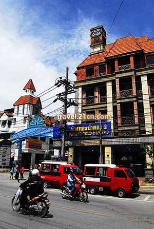 普吉的奇遇 普吉PearlHOTEL是我们通过导游预订的,价格是1200铢,优点是地处普吉镇,消费相对便宜、出行方便;缺点则是远离大海,没有海滨的感受。后来在闲逛中,我们发现了更实惠的酒店,那家至今记不起名字的酒店号称是全普吉最古老的酒店,但是标准间的价格仅550铢,着实让我们喜出望外。进了房间发现的确物有所值,房间很宽敞很干净,虽然设施差点、东西破点、灯光坏点,但是绝对实惠。如果选择住在海边,班淘海滩的那些小别墅价格也不是很高,1800铢就可以在看得到海的沙滩边上租一个双人间。在普吉我们还租了汽车自驾游玩(另文介绍),然后品味著名的泰国美食。说起泰国菜不得不提“TOMYAM”SOUP(冬荫汤),Y其实就是海鲜汤,里面有不少的虾、鱿鱼,加上泰国独有的香料和辣椒而成,味道极其鲜美、酸辣适口,想必每个华人都会喜欢。另外泰式的炒饭也非常有特色,米饭中通常放牛肉、鸡肉、海鲜等,分层炒制,香而不腻,比国内著名的扬州炒饭多了一点清爽。然后在用餐前,将枳的汁水挤于饭上,令饭略带酸甜而胃口大开。普吉岛上有很多海滩,著名的例如巴东(batong)海滩、卡他(KATA)海滩、卡龙(KARON)海滩等,多半是人头济济,老外成排躺在太阳椅上日光浴,所以不仅人多嘈杂,而且吃住行、娱乐的价格也变得非常昂贵。我倒是很喜欢NAIHARNBEACH,那里人最少、海最美。