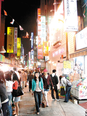 熟悉的 陌生城市 来到首尔,我并没有感到过于陌生,也许因为行走在身边的都是黄色皮肤的人们,经常能看到大厦或商店门口的汉字,因而没到了外国的感觉,但是首尔还是能给我一种生动的感觉:位于市中心的摩天大楼鳞次栉比,汉江两岸的高级公寓星罗棋布,一派现代化都市景象;而在现代文化中,你随时看到身边傲然矗立着一座古老城门或一间古庙,夹杂于高楼大厦间的传统韩式瓦屋,或是保留着当年富丽堂皇的景象的旧日王宫,高楼大厦对它退避三舍,马路也因此不得不大绕其道。我觉得它们也正是首尔生动的精华所在。 古文化的熟悉感 体验线路:景福宫 韩国文化有着深厚的东方文化根源和人文传统,当我越走近首尔的古建筑、古文化时,越能感受到它的熟悉,而在熟悉的古老之外,它们还展示着一种强烈的生动感:首尔被大大小小的博物馆包围着,大到像景福宫这样的故宫博物馆,小至像糕饼、稻菜这样的生活小用品也有博物馆。景福宫是朝鲜王朝正宫,相信喜欢韩剧的游客对景福宫更感兴趣,《宫》里出现的王室大礼、宫中游戏等场景,都以景福宫为外景地。其内勤政殿、交泰殿、庆会楼等不但在建筑风格上与中国古代宫殿如出一辙,连牌匾都是全部用中文书写。 虽然走在景福宫里就如在超小型的故宫,但那些身着韩国古装的祭祀游行及无处不在的韩式古乐却提醒着所处的国度,而且在景福宫还能体验开关宫门仪式。一切都按照古代仪范进行,从服装到器具,都相当考究。 体验提示:在首尔广场或德寿宫,每周二、周日会有古代王宫守卫换岗仪式:仪式由守门军、换岗军、承政院官吏穿着朝鲜时代的传统军服和官服,在军乐的伴奏下有条不紊地进行。记者在首尔文化节期间还感受到朝鲜皇帝出巡的盛典,打扮成古代将相、宫廷侍卫、乐队等的巡游队伍,行走在大街上,与现代铁马擦身而过,形成强烈的对比。 偷师学做泡菜 体验线路:国立民俗博物馆-泡菜博物馆 韩国泡菜名闻遐迩,在韩国人生活中的每餐必备,在这次韩国之旅也不例外,我充分地体验了泡菜的美味。在成行前,我已听说了首尔有一家泡菜博物馆,一直希望试试自己做泡菜,可惜由于行程安排未能达成,但是记者却觉得,这是体验韩国特色的一个好地方,建议到首尔的游客不要错过。 据了解,位于首尔江南区三成洞的首尔泡菜馆,这里的泡菜琳琅满目白菜泡菜、萝卜泡菜、包泡菜、茄子泡菜、苦野菜泡菜、牡蛎萝卜泡菜等等,看到那五颜六色的泡菜,叫人胃口大开。同时,博物馆按泡菜的历史、种类、制作及保存方法、功效等主题划分陈列厅,还用蜡塑方式展现了泡菜制作的每一个过程。游客还可亲身体验韩国泡菜制作过程,偷师回国自制泡菜相信也不赖。 体验提示:除了泡菜博物馆,位于景福宫附近的国立民俗博物馆,也可以体验做泡菜、穿韩服等传统的韩式文化。 创新文化 获共鸣 体验线路:JUMP表演-乱打专用剧场 近年来,韩风一直吹袭亚洲,记者观看了话剧“JUMP”以及“乱打”剧场的表演,感受到首尔的流行表演文化。 身体语言也许是世界上最实用的语言,在韩国,一些特别的表演就很好地运用了肢体语言。“JUMP跳跃”描述的是一个糊涂小偷闯进了一家武术世家后发生的一连串糗事,是一场集欢乐的音乐、杂技、跆拳道、韩国飞脚术等功夫于一体的戏剧表演。演员以肢体语言、声音和音乐来表达剧情,一种最简单的表演,却让外国观众很容易理解,得到共鸣。不用懂韩文,观众就能感受到演员演绎的韩国的文化、功夫,而我觉得其中还加入了一些中国功夫元素。 体验提示:地铁1号线钟阁站,钟路2街清溪川方向20米Cinecore大楼。鼓点是韩国的另一个极具特色的文化,“乱打”就是一种以节奏为主创作的戏剧作品,虽然没有任何对白,却让人极容易了解剧中人物的心情和故事。故事以厨房为背景舞台,4名厨师和1名服务员表现在制作婚姻宴菜肴过程中的热闹场景,他们用各种厨房用品有节奏地敲打,敲锣打鼓一般,也十分搞笑。 追逐韩式时尚 体验线路:仁寺洞-明洞-东大门 如果你喜欢韩国风格的时尚,那么在首尔的明洞、东大门等商业区,一定能挑到心头好,如果用心,还能够挑到不少漂亮又便宜的饰物。为了争取时间逛街,我和几位来自上海、成都的同伴第二天晚上一回到酒店,便直奔明洞,奔向一些这里较知名的品牌专卖店、百货店,可是明洞的商店通常十点就关门,于是我们总是只能匆匆地选购,而且一连三晚都出现这样的情况,让我们直呼“累啊”。 东大门市场更适合淘宝,夜晚的东大门更显精彩,入夜后购物大楼亮起绚烂的霓虹灯火,大声播送着快节奏的音乐,即使已经是午夜一两点,这里还是热闹非凡。 血拼提示:在明洞有不少质量上乘的品牌产品聚集在中央大街和两边的胡同里,需要耐心地逛。而且,那里还有一两家兑换率较高的,如果想换币相信是较好的选择;东大门营业时间很长,直到凌晨五时,我和同伴逛到凌晨一点便投降了,爱SHOPPING的游客可不要放过了。