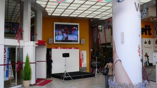 广告下面就是演示台,不过没赶上有人表演,在放拳击,还是挺强的