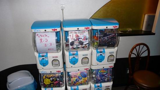 头一天去吃的烤肉自助店外面就找到了任的踪迹,我还是很高兴的,四种造型的盒蛋,200日元一个,可惜没有我爱用的蘑菇头,否则一定抽出来