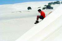 在兰斯林,还有一处非常适合沙漠探险的地方。而最新奇、刺激的沙漠玩意莫过于沙漠四驱车与滑沙。