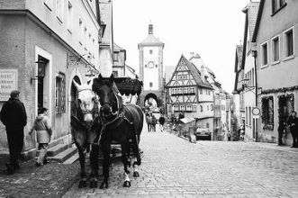 在维尔兹堡火车站的8号柜台拿车钥匙,出示订单和驾驶证,车就停在站前广场,简单的手续后,我们很快就站在“自己的”车面前。 从维尔兹堡出发到菲森,自古就是穿越阿尔卑斯山脉的商路。350公里的路,残留着中世纪余香的村镇散落在南部美丽的山林草坡间,陶伯河上的罗腾堡绝对是值得可圈可点的去处。 中古时代,临河的山岗峭壁,是城市的要塞和主教的官邸,城市的世俗生活在河岸的另一端展开。从维尔兹堡、海德堡到奥地利北部的萨尔斯堡都是这样的格局。罗腾堡却是一座完全建造在山岗上的小城,最早的城墙建于12世纪,护城墙和高挑的塔楼、门楼守护着小城宁静温馨的生活,构成精致的风景,是德国著名的浪漫之路。旅游线上,有“中世纪之宝”美誉的精华地段。公路仰望城堡,绿色的山岗点缀着紫丁香和蓝莓花,罗腾堡砖红的屋顶和古老城墙轻轻探出。城中全是石板路,我们拿了预订酒店的停车纸就可以把车开进城。车轮在古石巷道“咯噔咯噔”地慢行,生怕踩碎一个中世纪的旧梦。