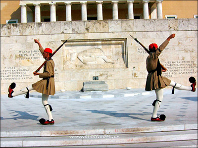 紧挨着Syntagma Square的是无名烈士墓,顺便去看看有没有换岗,这可是雅典一个著名景点。换岗没有看到,不过看到两个守卫的士兵,身着鲜艳的传统服装,走路姿势缓慢而夸张,宛如童话一般。