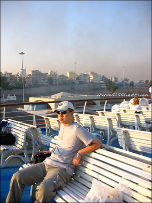 因为书上说雅典港口有些大,一定要弄清楚所乘船只停靠的位置,我们决定坐地铁到港口转一圈,反正有通票,呵呵。船的泊位挺好认的,从地铁站出来就能看到。乘地铁回市区的时候,有一个流浪汉模样的人(Sissi说不是流浪汉),坐在我们对面,看我们一直在翻看地图,主动问我们去哪里,需不需要帮助,真友善。