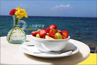 时间:2026/3/31 11:00:53来源:不详 中午,坐在海边“小威尼斯区”的一个小餐厅,点了一杯果汁,一碗水果沙拉,一共8欧,真贵,没办法,为景色付费嘛。