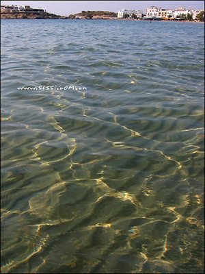 往小镇方向走了几百米,那里有一个海滨浴场,水看起来没有Paradise Beach那么漂亮,没有什么颜色,但也很清澈,我立刻投身大海,5米,10米,20米,天哪,怎么水还不到腰部,我承认我长得是高大了些,但这海滩也太平缓了,自杀都不行。阿波罗的太阳战车逐渐西去,他的光辉洒在凌波上,点点金光不停的诱惑着我向西边游去。