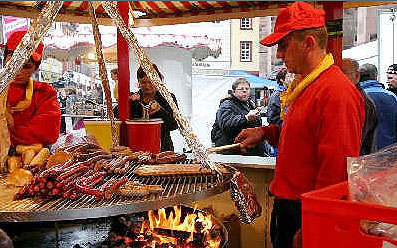 不说哈罗,也不说古腾塔克,一开口就是一长串儿……我这才恍然想起确实还有一个最好玩的说法竟忘了告诉父亲,那就是:嘿!六根香肠配酸菜! 这句话,在德国路边的烤香肠小食摊子上,在啤酒棚里,特别是有些城市的香肠纪念厨房里,简直就是此起彼伏,但不只是对着女招待说,而是客人们互相之间彼此打招呼。一般也不管认不认识你,上来就拍拍你的肩:嘿!六根香肠配酸菜?而热情的德国人都会击掌为庆:对!就是六根香肠配酸菜!这和英国人用谈天气开始搭讪异曲同工,只不过谈德国的香肠配酸菜要比天气花样多多了。 先说为什么是六根,不是三根也不是七根(我第一次碰见有人这样和我打招呼时,很认真地回答:“可我六根吃不了,三根行不行”?只见周围很快笑趴下一大片)。德国的很多地区对中世纪的风俗文化依然追崇,而在中世纪时香肠是以六为一个固定单位的,不得任意更改,所以横竖横要吃就要六根一起吃。
