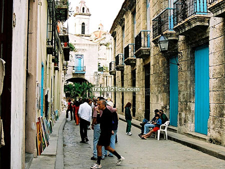 我环顾四周,快乐洋溢的空气里,满座着各色游客。邻座的那一对,我用一种走遍大半个古巴即将结束旅行的比较“老到”的眼光,看出来了,今晚肯定是,他们到达古巴的第一个晚上,明媚的旅程即将在他们面前展开,他们不确定地研究着餐牌,沉浸在一种新鲜的喜悦中。当然,他们并不知道,对面的我是在古巴的最后一个晚上。他们也并不知道,我嫉妒他们。 夜已深,我们决定最后一次“冒险”,乘搭三轮车回我们的民居。在哈瓦那,外国游客合法的交通工具是出租车,三轮车这种交通工具,只是给当地人提供的方便。如果有哪位外国游客胆敢坐了,那么,你没事;三轮车夫,就会有大事,不是罚款,而是班房。可是,对于三轮车夫来说,载游客明显是比载当地人利润高很多的生意,所以胆大的人还是屡屡尝试。 街边角落里那辆牛高马大的三轮车旁,一群年轻人,我们一走过去,他们全都围了上来,我把民居的地址拿出来,“8个外汇披索。”其中一个说。 “抢钱哪?”我说。“如果我们付古巴披索呢?” “200。”