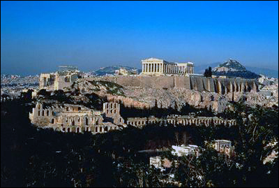 出了机场,当地时间还不到早晨六点,由机场到市区的巴士还未开驶,于是招呼了一辆出租车,请司机载我到布拉卡区的一家旅社。我住的地方就在“阿克波里斯”(雅典卫城)的下方,“阿克波里斯”在希腊文的意思是“高处之城”,就是古代在城市附近高处兴建的防卫建筑,著名的“巴特农神殿”就在其上。旅社的附近就是雅典城市发展史上著名的里程碑——“哈德良门”,也和“莎比欧”国民公园紧邻,到市中心“辛达格玛”宪法广场步行约十分钟,算是闹中取静的地方。
