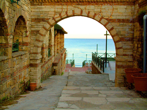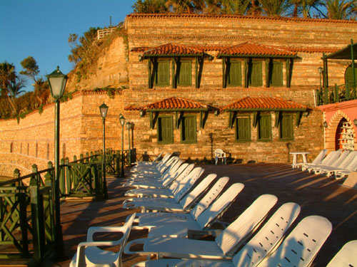 日光浴场,古墙围绕,濒临大海